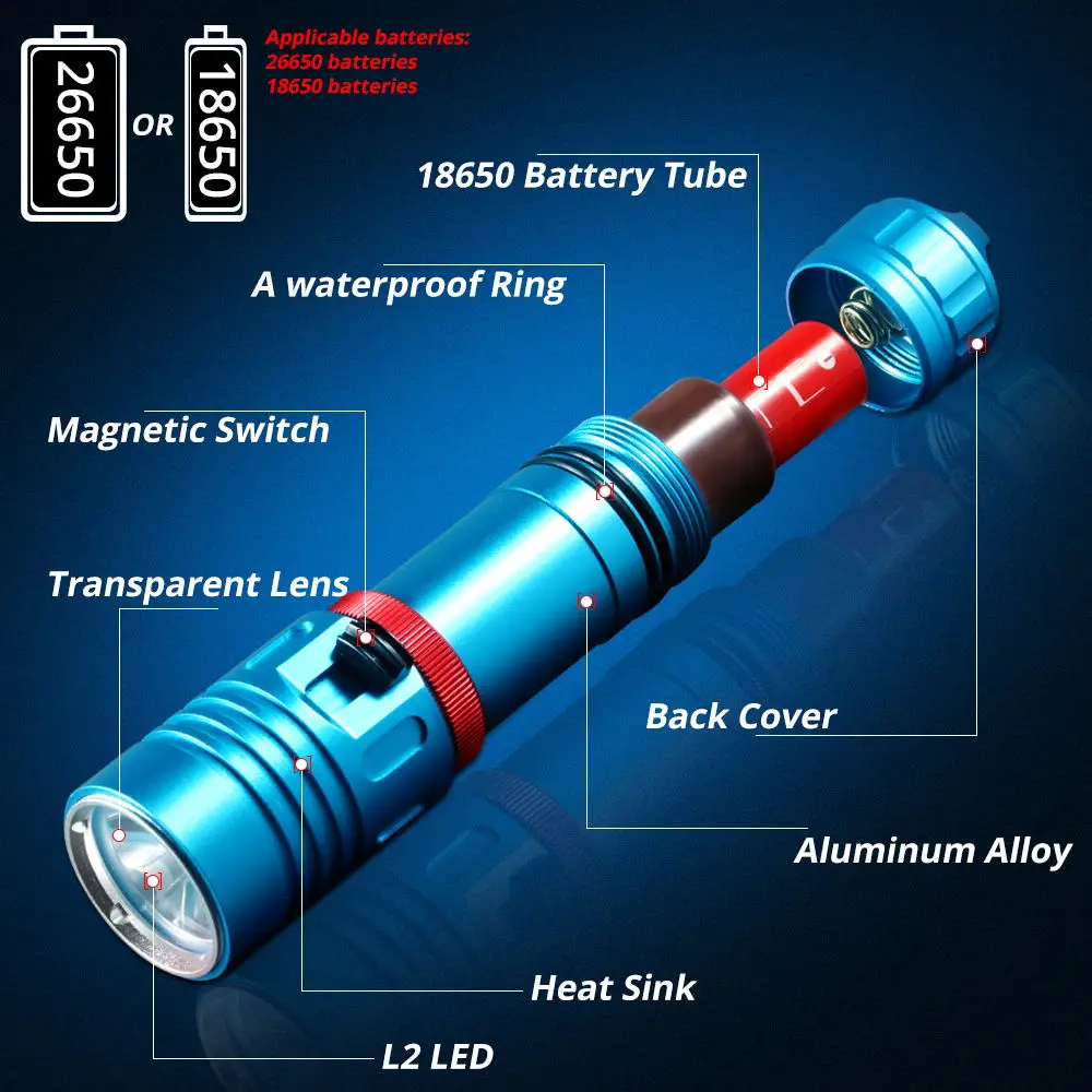 Buy IPX8 Waterproof Level XM-L2 18650 or 26650 Diving flashlight LED Underwater Flashlights Portable La Right Here and Right Now Just for USD US $11.18, Price will be rise up at any time without notification and I cant guaranted that the stock is still available tommorow or next hour. So Please Save It Now!